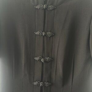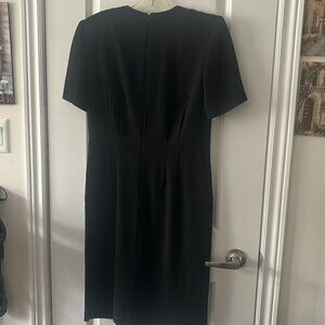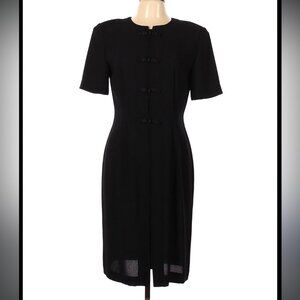 Shoulder pads inside. 100% polyester. Black Dress. Very good preowned condition. Vintage little black dress. Size 6.