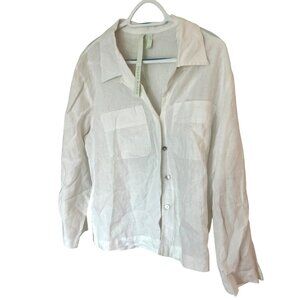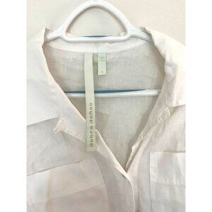 Debra deRoo Womens White Linen Button Down Shirt Size Small