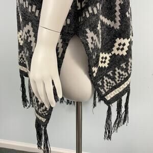 Debut Aztec Southwestern Fringe Sweater Poncho Open Front Cardigan S/M Boho