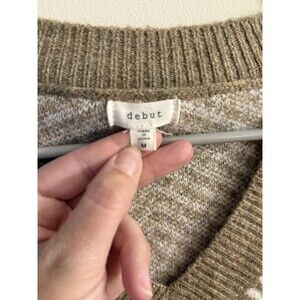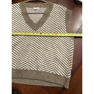 The Debut Beige Tan Herringbone Women's Cropped Knit Sweater Vest in size M is a stylish and cozy addition to any woman's wardrobe. Made from a blend of polyester, spandex, and acrylic, this sweater vest features a herringbone design in a neutral beige color, perfect for pairing with a variety of outfits. The cropped style adds a modern touch to the classic sweater silhouette, making it a versatile piece for both casual and dressy occasions.