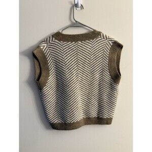 Debut Beige Tan Herringbone Women's Cropped Knit Sweater Vest M Cottage Core