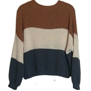 Debut Cropped Color Block Crewneck Soft Feel Sweater Sz M