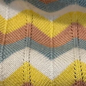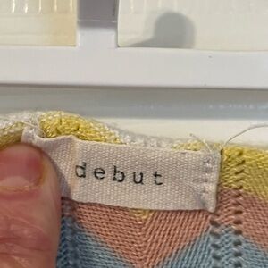 Vibrant chevron top by Debut. Features yellow, pink, and blue hues. 11 1/2” across and 9 1/2” length.