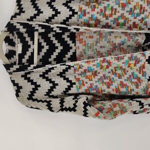 Debut Small Aztec Open Front Cardigan Sweater Black Multicolor