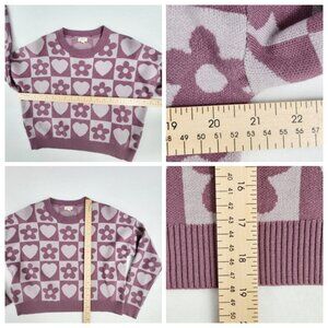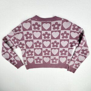 Debut Womens Cropped Sweater Top Size S Pink Hearts and Flowers