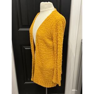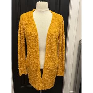 Debut Women's Mustard Yellow Textured Long Cardigan Small