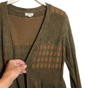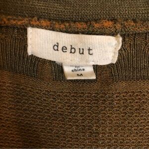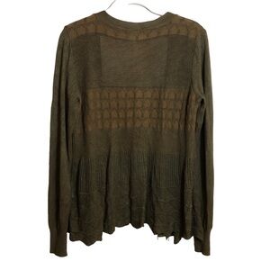 Debut Women’s Open Front Cardigan Olive Gold Pointelle Lightweight Size Medium