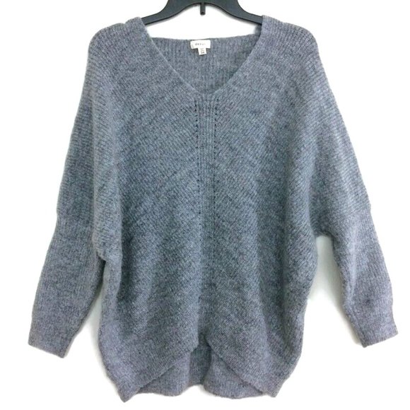 You are buying a pre-owned, in good condition with minor signs of wear, Debut Womens Sweater Knitted Gray Oversize Cozy Soft Ribbed Dolman Sleeve V Neck Size S/M.