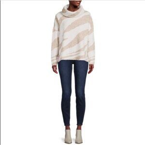 Debut XS Beige Cream Zebra Print Oversized Cowl Neck Sweater Textured Knit Cute