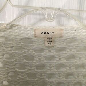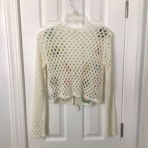• Condition: Appears gently used, good condition This elegant white cardigan from Debut features a unique open mesh pattern at the center, adorned with delicate floral embellishments. The long sleeves and classic crew neckline add a touch of sophistication, while the intricate lacework offers a romantic, handcrafted aesthetic. Perfect for layering, this cardigan combines style and comfort effortlessly.