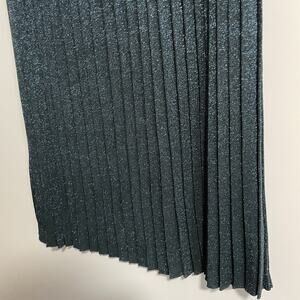 Deby Debo Linen Blend Clarice Knit Pleat Midi Skirt Medium Teal Sparkle Metallic