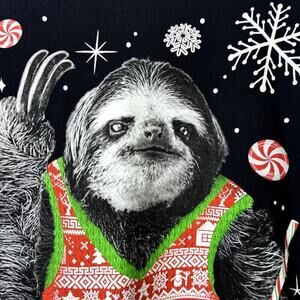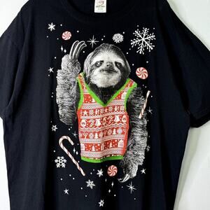 Dec 25th Christmas Sloth Wearing Holiday Vest Funny Black T-Shirt Men's Size XL.