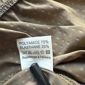 This Deca women's mini dress features a chic polka dot pattern in brown with a full front zipper. Crafted from a lightweight polyamide and elastane blend, it offers adjustable straps for a custom fit. Perfect for warm weather, this dress is stylish yet comfortable, ideal for casual occasions or outings. It has a flattering silhouette and durable fabric construction.