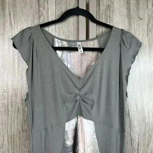 Deca Dress Sz 2 Art To Wear Gray Cap Sleeve V Neck