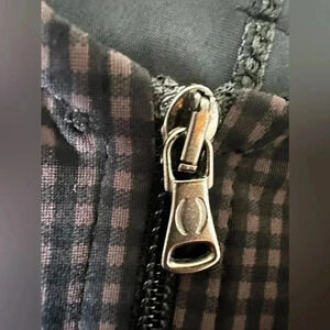 Made in France athleisure Tunic Tank Top with gingham print details on chest and pockets and mesh inserts Zipper front closure, sides deep pockets