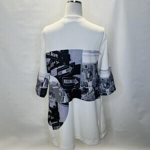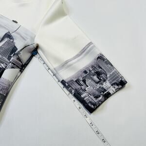 Deca Jacket Womens Large White Black Cityscape Print Graphic Tunic Urban Skyline