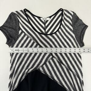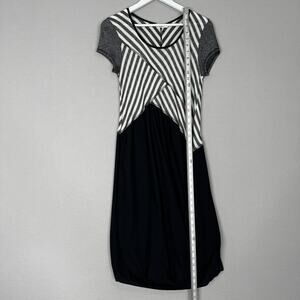 Deca Paris Womens Dress 3/US 10 Black Midi Striped Layered Lagenlook Artsy Funky