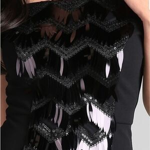 Polyester 5% spandex. Back zip closure. Dry clean only. Please see size chart provided by manufacturer. Price is firm unless bundled.