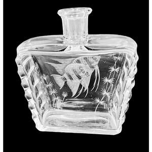 Clear Glass Decanter With Stopper 16 fl oz Frosted Fish Etched Barware Ribbed
