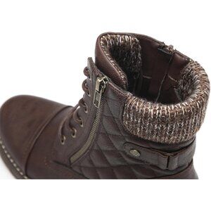 Stylish Design: The boots feature a low stacked heel, round toe, and a decorative lateral side zip with a knit ankle cuff.