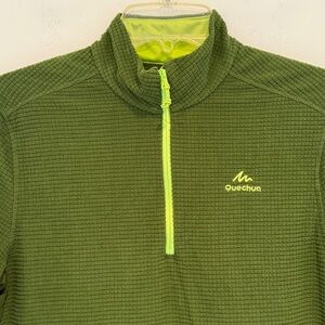 Decathlon Quechua Waffle Grid Fleece 1/2 Zip Pullover Men's XS Green Mid Layer Vented Pits Elastic Band Cuffs Contrasting Trim