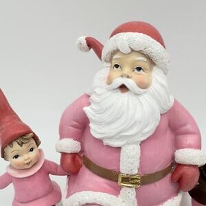 December Diamonds Retro Pink Dancing Santa Claus With Elves Christmas Figure NEW