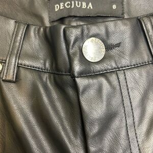🖤”Decjuba” Women's Black Flat Front Faux Leather Pants w/ Zipper & Pockets Sz 8🖤