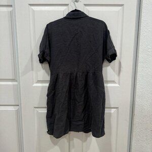 Decjuba womens shirt dress size S grey midi linen short sleeve collar 092930