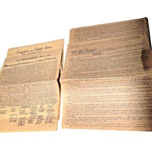 Explore the foundations of American democracy with these vintage paper replicas of the Declaration of Independence and the US Constitution. Perfect for educational purposes, these paper posters offer a tangible piece of history that students and history enthusiasts can refer to for their studies or personal interests.Proudly made in the United States, the reproductions capture the essence of the iconic original documents, minus the signatures, and are a non-political tribute to the themes of freedom and governance. They serve as a subtle yet significant addition to any collection of historical memorabilia.