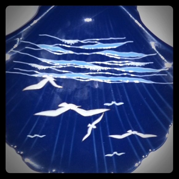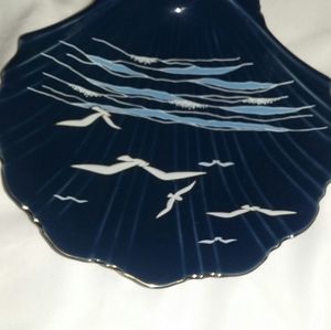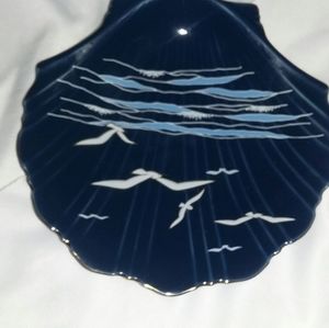 Blue shell shape plate with seagulls