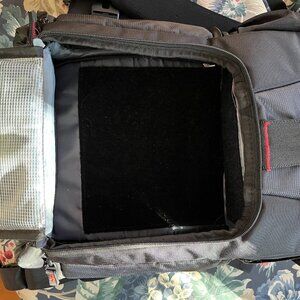 In excellent condition. Can be configured as backpack or sling. The padded laptop compartment accommodates devices up to 15.4 inches. Configurable compartments accommodate your camera, accessories, and personal belongings. Weighs 3 pounds. Waterproof nylon. All zippers are functional.