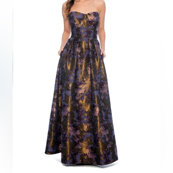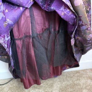Decode 1.8 formal dress/ball gown, size 4. The colors are super pretty in person. Back zipper, and there is piping on the sides. Only worn 2 times, so it is in great pre-owned condition with no rips, holes, or stains.