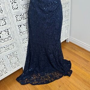 Decode 1.8 Navy Blue Lace Ruched Sequin Fairycore Flowy Long Formal Gown Sz 10