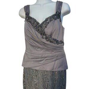 Decode 1.8 Silver Satin Beaded Ruched Top Lace Sequin Bottom Gown