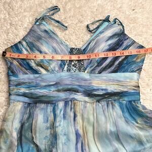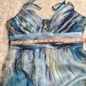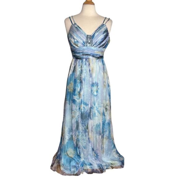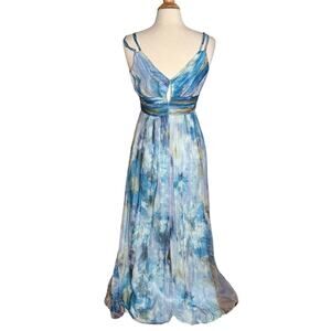 Decode Y2K Mermaid Core Maxi Formal 100% Silk Prom Dress Watercolor Pattern PP7