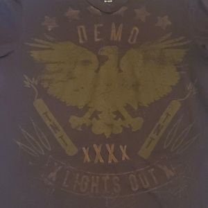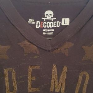 Decoded black tshirt, olive colored lettering, good condition, size large
