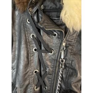 Deconstructed Dystopian Streetwear Punk Y2K Faux Leather Jacket Small/Med(?)