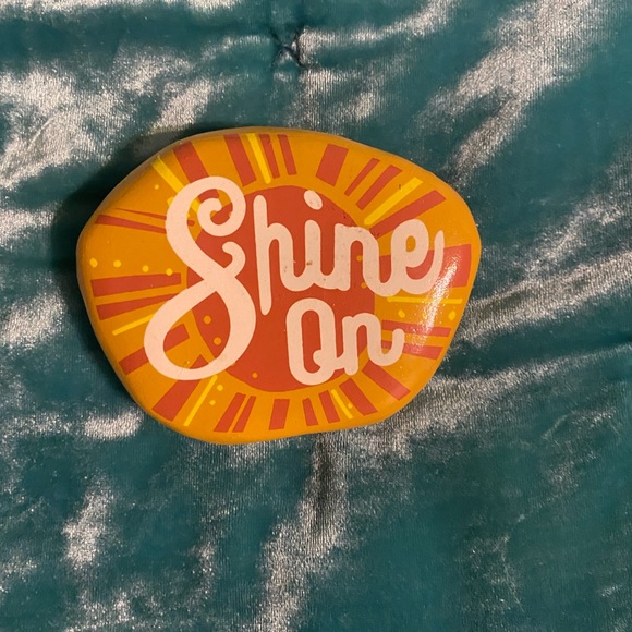 Motivational painted rock decor. Has part of the sticker on the bottom