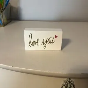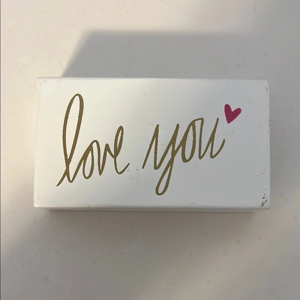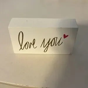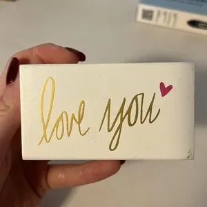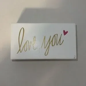 White box featuring 'love you' in gold script and a pink heart accent. Perfect for gifting or decor!