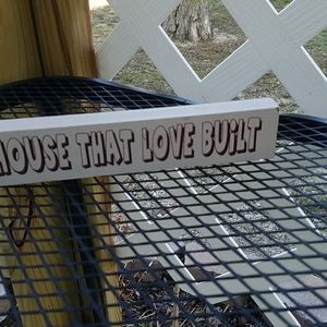NWT / Decor Sign / White with red Writing/ THIS IS THE HOUSE THAT LOVE BUILT/ Brand / K & K Interiors