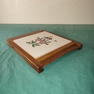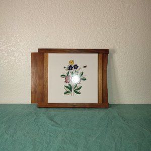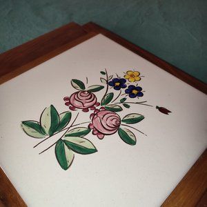 Decor Wooden Trivet Flowers Ceramic Tile Vintage floral cottagecore academia