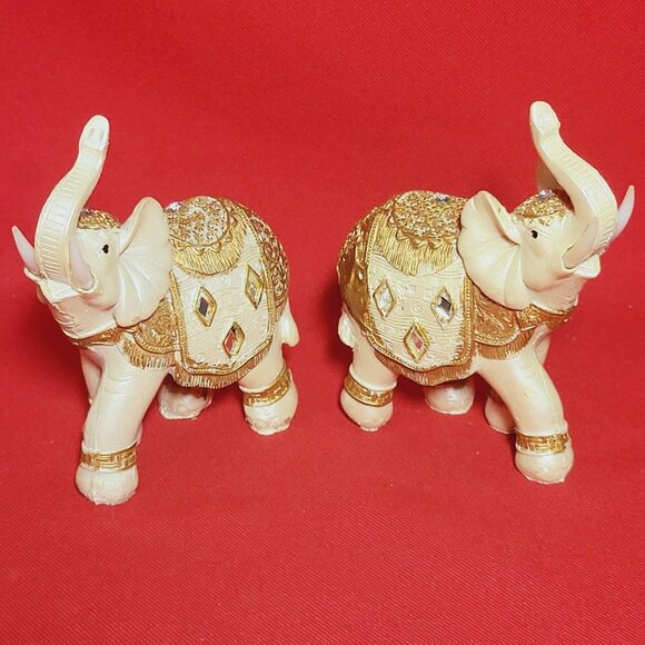 Decorated Elephant Trunk Up Statue Figurine Home Decor Set of 2