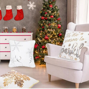Decoration Throw Pillow Square Snowflakes Plush Pillow 13"x13" White Soft Sofa Cushion Velvet with Gold Sequin Home