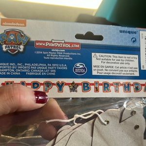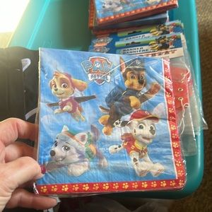 4 banners if paw patrol 4 packs of 16 count napkins Had party got too many Never opened