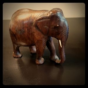 Handcraved teakwood elephant. two small tusk broke off. They are 50 years old