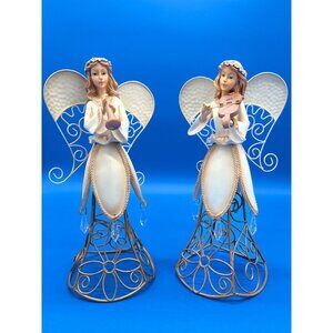 Decorative Angel Figurines Musical Theme Wire Frame Metal Base Set