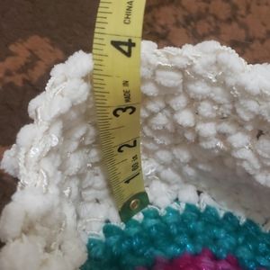 Cute and fluffy white, pink, and teal decorative bowl, perfect for giving as a gift container, or to use as a catch all for key, coins, etc, or to hold other decorative items! Brand New and handmade!