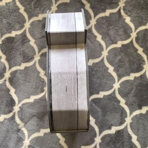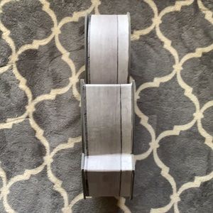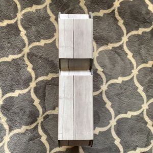 This “&” box is made of with a vinyl covering, the box opens therefore allowing you to put something in it or it can stand so that you can use as a farmhouse decoration anywhere in your home, office, etc. This box would also make a very cute gift box!