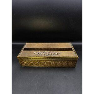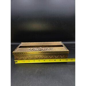 Decorative Brass Tissue Box With Rose Motif Vanity Beautiful Design 5x10.25 in