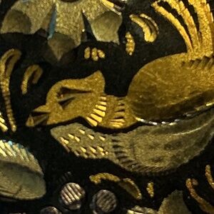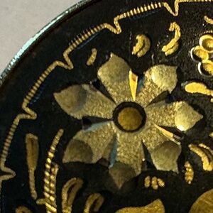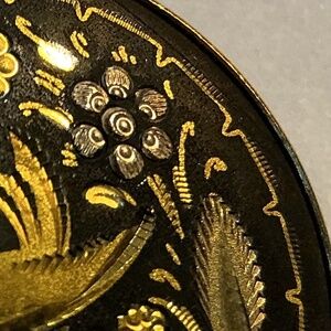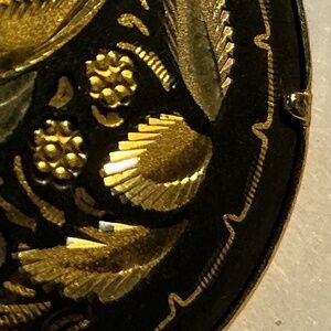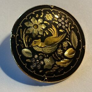 Decorative Brooch. The design appears to be cut into the metal. The piece is 1 1/4” round.